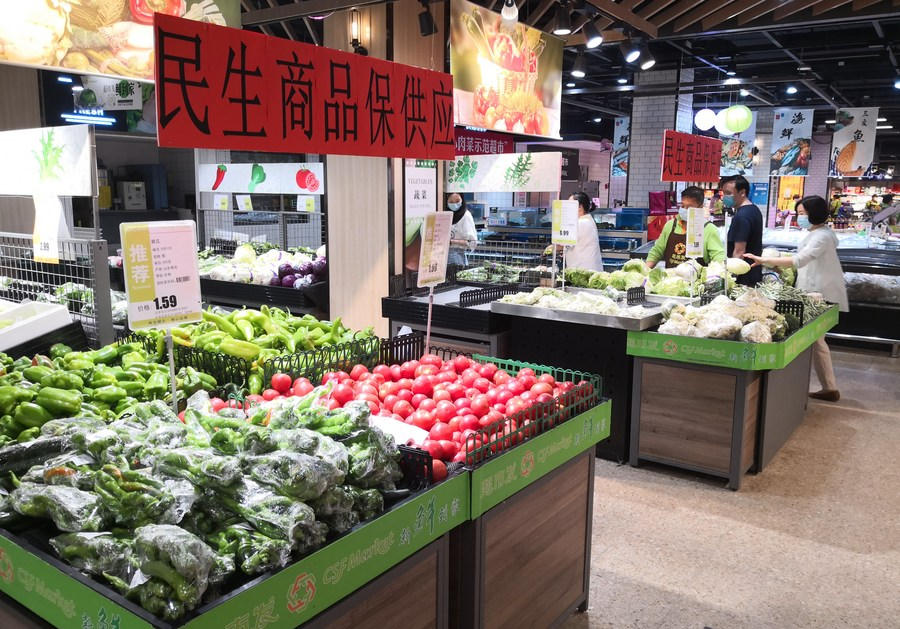 Aspecto de un supermercado en el distrito de Haidian de Beijing, capital china, el 13 de junio de 2020. (Xinhua/Ren Chao)
