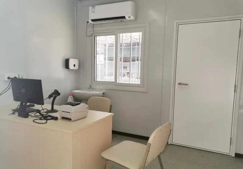Se realizaron muchos dise?os personalizados sobre los estándares de configuración de los centros para la realización de pruebas de ácido nucleico. Cada cabina cuenta con cuatro puertas y dos grupos de ventanas para garantizar el flujo unidireccional de personas, médicos y pacientes a canales separados y ventilación por convección de aire. El punto de instalación del aire acondicionado considera completamente la dirección del flujo de aire. Las lámparas en las cabinas cuentan con luces de mayor brillo específicas para centros médicos, que son convenientes para que el personal médico realice las operaciones de muestreo. Para satisfacer las necesidades de operación las 24 horas del día, se instaló un sistema de iluminación exterior alrededor del centro provisional.