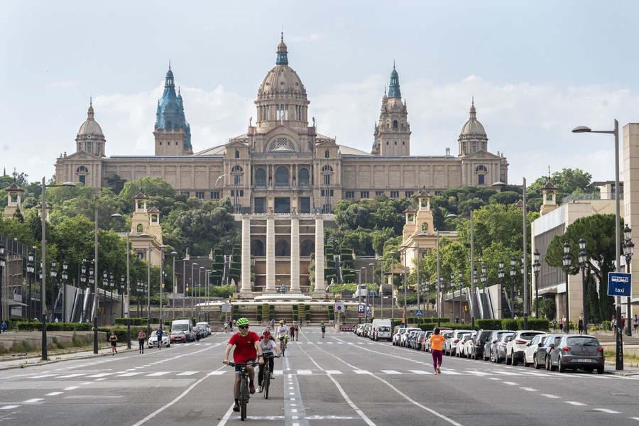Personas montan bicicletas durante la pandemia de COVID-19 en Barcelona, Espa?a, el 19 de junio de 2020. (Xinhua/Ayuntamiento de Barcelona)