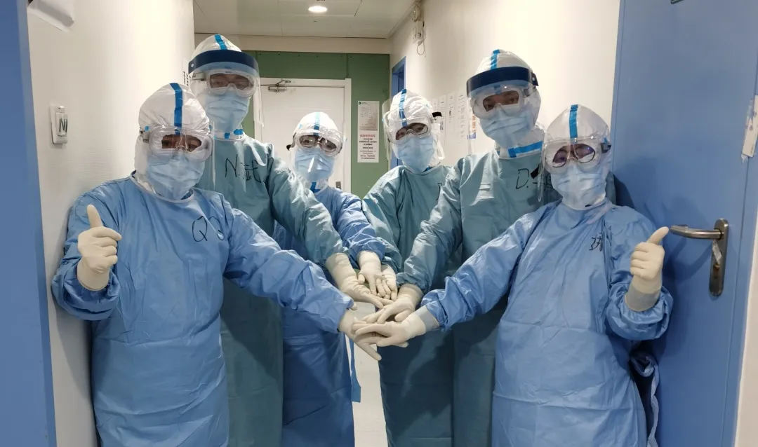 Los miembros de un equipo médico del Hospital del Pueblo de la Universidad de Pekín posan para fotos de grupo antes de entrar en la UCI del COVID-19 en Wuhan. (Foto: Hospital Popular de la Universidad de Pekín)