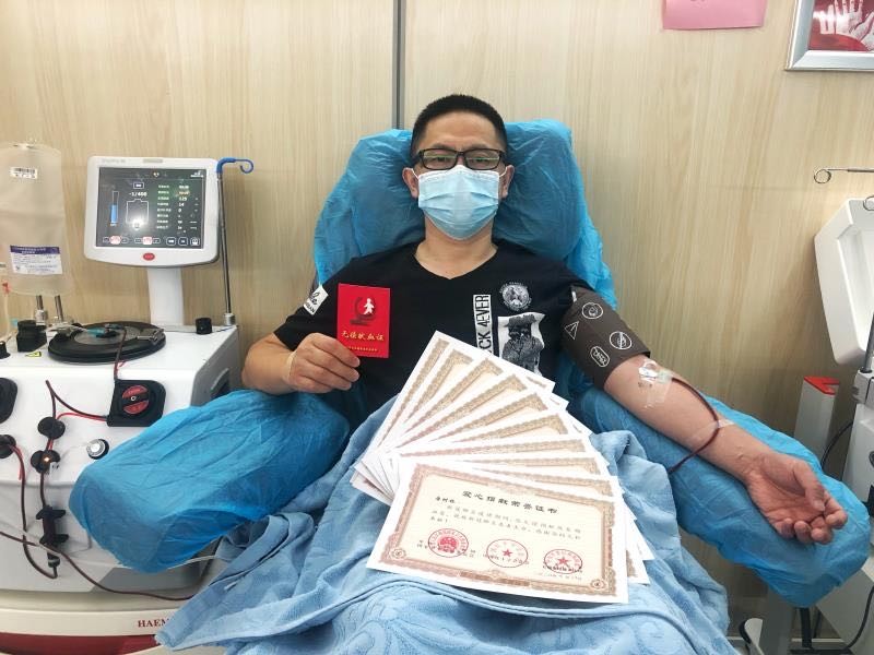 Al hacerlo, se convirtió en el primer donante chino en ofrecer 10 veces su sangre.