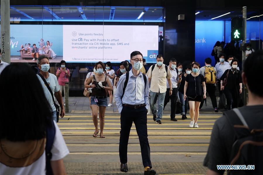 Las personas caminan con mascarillas por el área Central de Hong Kong, sur de China, el 27 de julio de 2020.