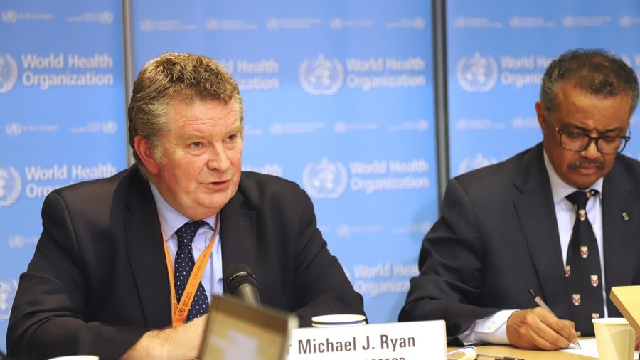 Michael Ryan (izquierda), director ejecutivo del Programa de Emergencias Sanitarias de la Organización Mundial de la Salud (OMS), se dirige a una conferencia de prensa en Ginebra, Suiza, el 18 de febrero de 2020. (Foto: Xinhua)