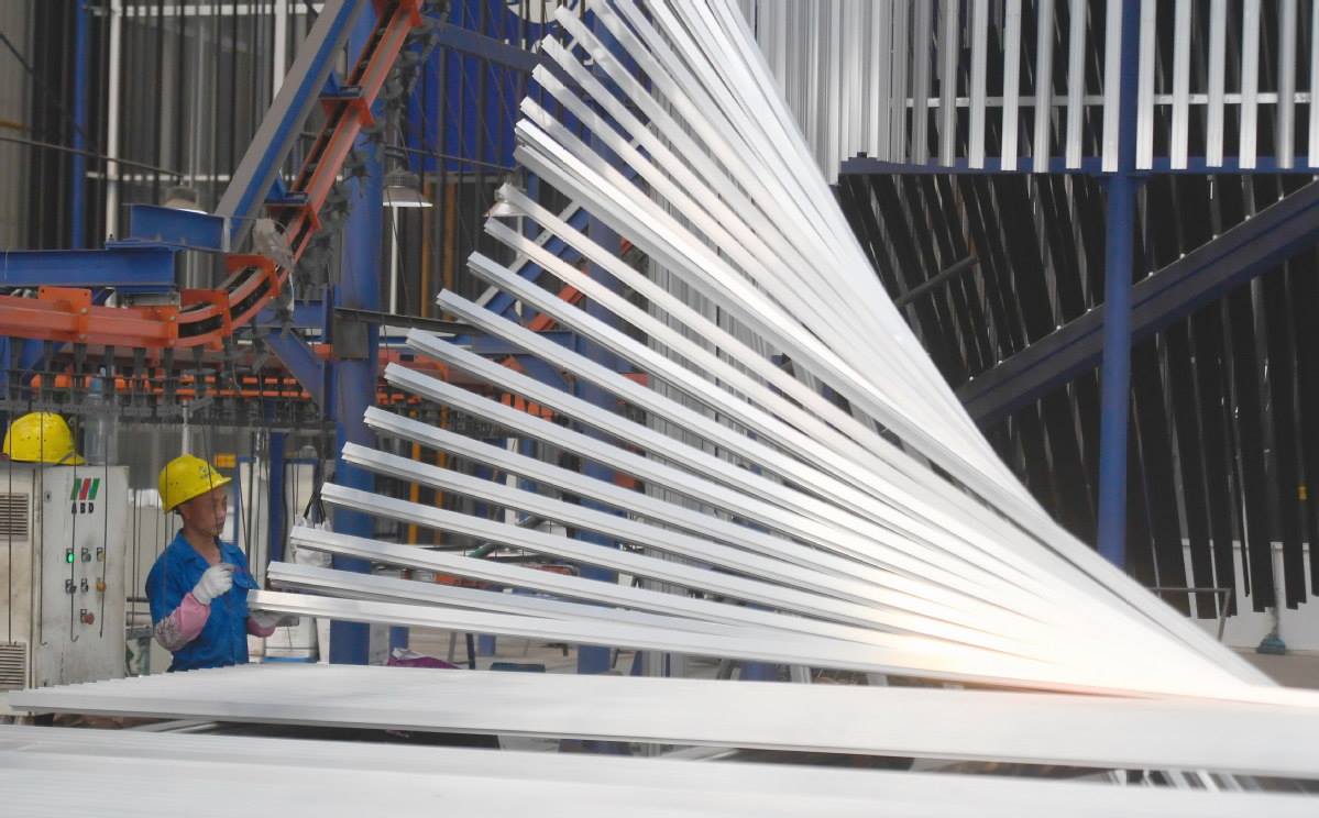 Un empleado trabaja en una planta de aleación de aluminio en el distrito Wuxing de Huzhou, provincia de Zhejiang. [Foto: Xinhua]