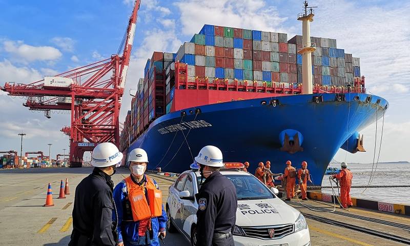Cuando el barco llegue al puerto, la policía de inspección fronteriza de China abordará el barco lo antes posible y completará su inspección.