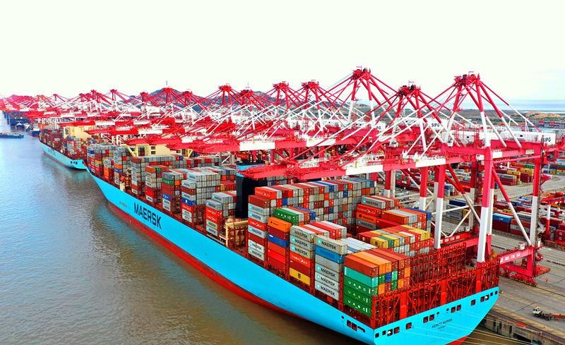 El 25 de octubre, en el muelle del puerto de aguas profundas de Yangshan, en Shanghai, las grúas cargaron sin descanso los contenedores en los buques. Son muchas las embarcaciones que transportan contenedores de productos que se exhibirán en la tercera CIIE. (Ji Haixin / Pueblo en Línea)