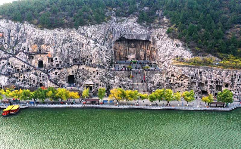 Luoyang, Henan, 30/11/2020 (El Pueblo en Línea) - Ubicadas en Luoyang, provincia de Henan en el centro de China, las Grutas de Longmen se concentran en los acantilados este y oeste del río Yi, y se extienden a lo largo de un kilómetro, representando lo mejor del arte budista chino.