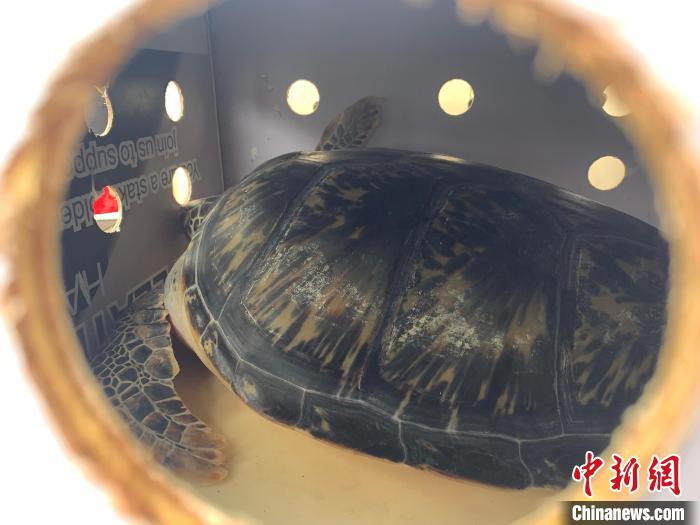 Una de las seis tortugas marinas transportadas hacia Sanya, provincia de Hainan, 15 de septiembre del 2021. [Foto: Chinanews.com]