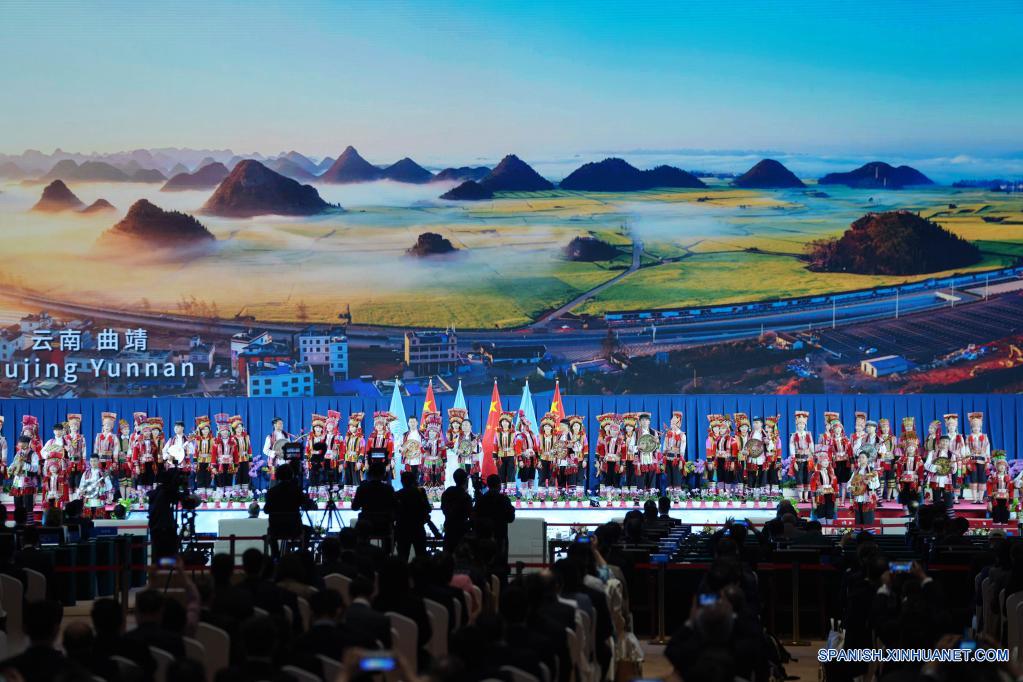 KUNMING, 11 octubre, 2021 (Xinhua) -- Artistas folclóricos realizan una presentación durante la ceremonia de inauguración de la 15a reunión de la Conferencia de las Partes de la Convención de las Naciones Unidas sobre la Diversidad Biológica, conocida como COP15, en Kunming, en la provincia de Yunnan, en el suroeste de China, el 11 de octubre de 2021. La COP15 se inauguró en Kunming el lunes. (Xinhua/Fei Maohua)