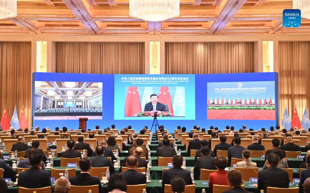 Xi asiste a reunión con motivo del 50° aniversario de recuperación del esca?o legítimo de República Popular China en ONU (3)