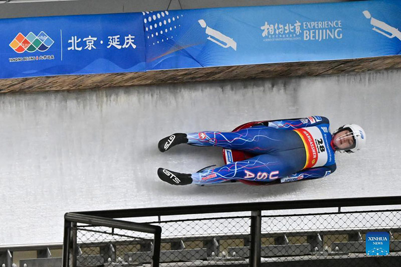 Summer Britcher de Estados Unidos compite durante las competiciones individuales femeninas en la Copa del Mundo de la Federación Internacional de Luge (FIL) en Yanqing, Beijing, el 21 de noviembre de 2021. (Xinhua / Chen Yichen)