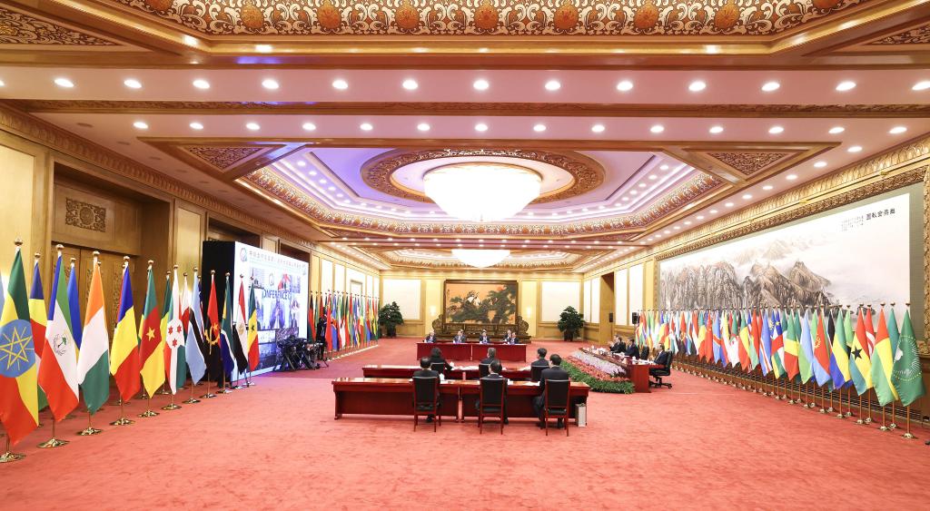 El presidente chino, Xi Jinping, pronuncia un discurso de apertura a través de un enlace de video en la ceremonia de inauguración de la VIII Conferencia Ministerial del Foro de Cooperación China-áfrica, en Beijing, capital de China, el 29 de noviembre de 2021. (Xinhua/Liu Bin)