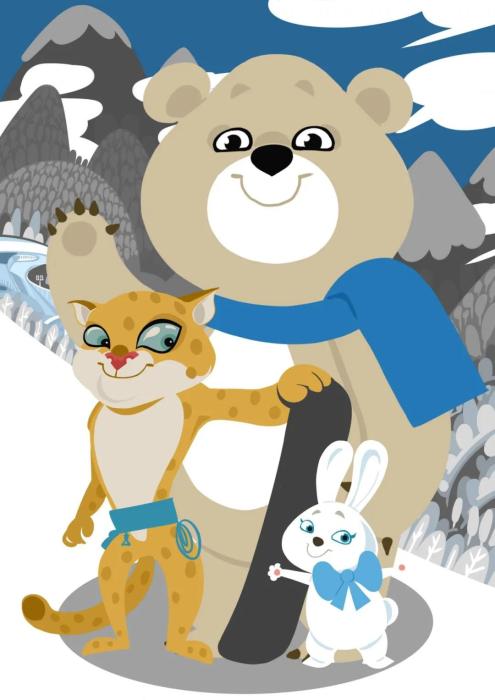 Las mascotas de los Juegos Olímpicos de Invierno de Sochi 2014 también adoptaron tres imágenes de animales: oso polar, leopardo de las nieves y liebre. El lindo oso polar es muy popular entre los rusos.