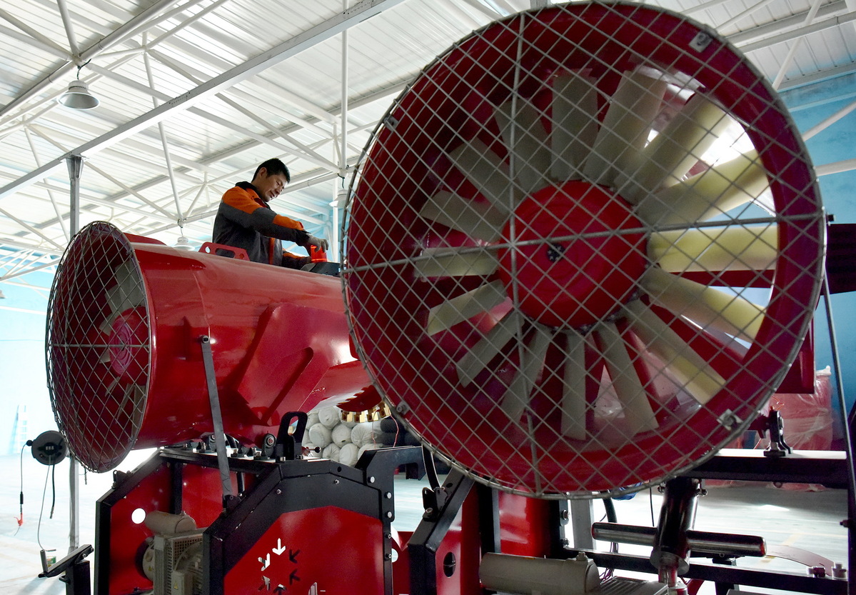 Un trabajador ensambla una máquina de nieve en una fábrica de Zhangjiakou, provincia de Hebei, 15 de noviembre del 2022. (Foto: Chen Xiadong/ China Daily)