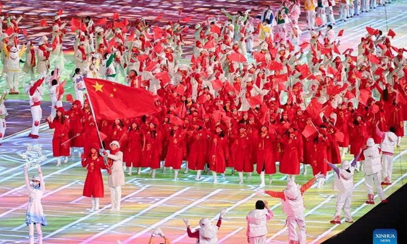 La delegación olímpica de la República Popular China desfila en el Estadio Nacional durante la ceremonia inaugural de los Juegos Olímpicos de Invierno de Beijing 2022 en Beijing, capital de China, el 4 de febrero de 2022. (Xinhua)