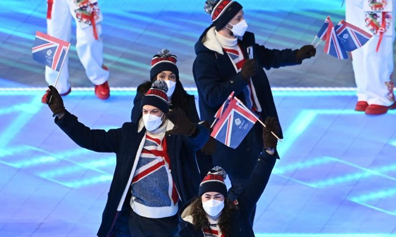 La delegación olímpica de Gran Breta?a desfila en el Estadio Nacional durante la ceremonia inaugural de los Juegos Olímpicos de Invierno de Beijing 2022 en Beijing, capital de China, el 4 de febrero de 2022. (Xinhua)