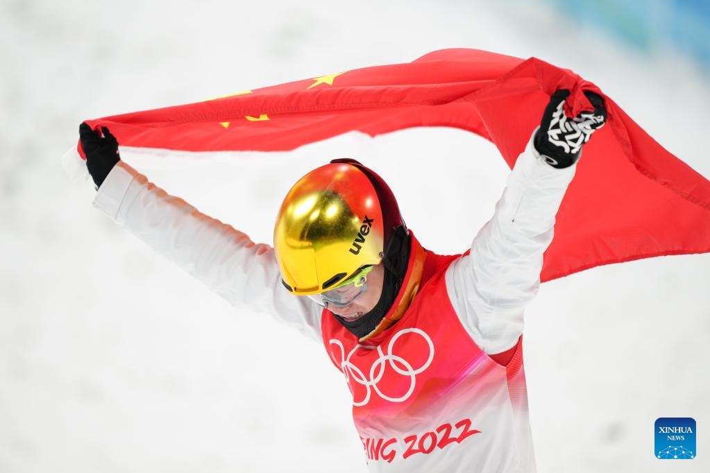 Cuatro veces olimpista chino Qi Guangpu gana medalla de oro en esquí aéreo de estilo libre masculino en Beijing 2022 (3)