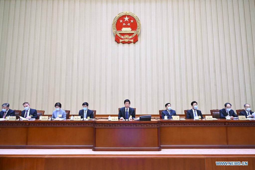 Li Zhanshu, presidente del Comité Permanente de la APN, presidió la primera reunión plenaria de la sesión. Un total de 157 miembros del Comité Permanente de la APN asistieron a la reunión.