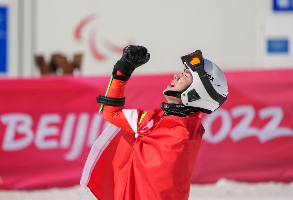 Atleta chino Liang Jingyi gana oro en Super-G masculino de pie en Juegos Paralímpicos de Invierno de Beijing (4)