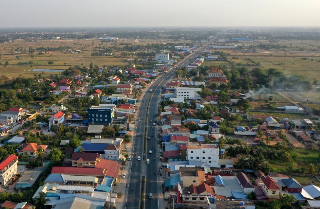 El 1 de marzo de 2022, un dron fotografió el proyecto de reconstrucción y ampliación de la autopista n° 3 en la provincia de Takao, al sur de Camboya. El proyecto se llevó a cabo con ayuda de China (imagen de dron). (Foto:Li Lai)