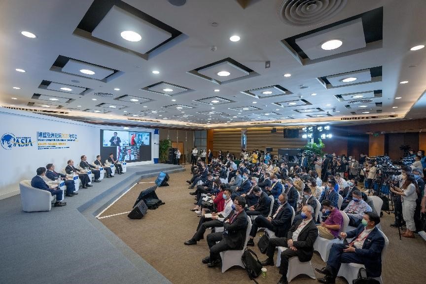 El 20 de abril de 2022, comenzó en Boao, Hainan, la reunión anual de 2022 del Foro de Boao para Asia. La imagen muestra el escenario del subforo de "Desarrollo de Integración Energética, Construyendo un Mundo Verde". (Foto:Yuan Chen/Pueblo en Línea)
