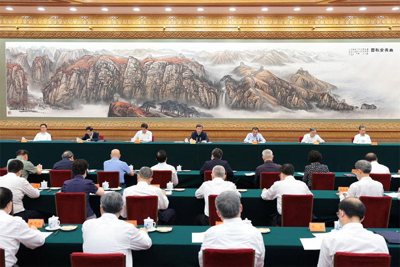 BEIJING, 30 julio, 2022 (Xinhua) -- El presidente chino, Xi Jinping, también secretario general del Comité Central del Partido Comunista de China y presidente de la Comisión Militar Central, pronuncia un importante discurso en una conferencia central sobre el trabajo del frente único, en Beijing, capital de China. Li Keqiang, Li Zhanshu, Wang Yang, Wang Huning, Zhao Leji y Han Zheng asistieron a la conferencia, que se celebró del viernes al sábado. (Xinhua/Yao Dawei)