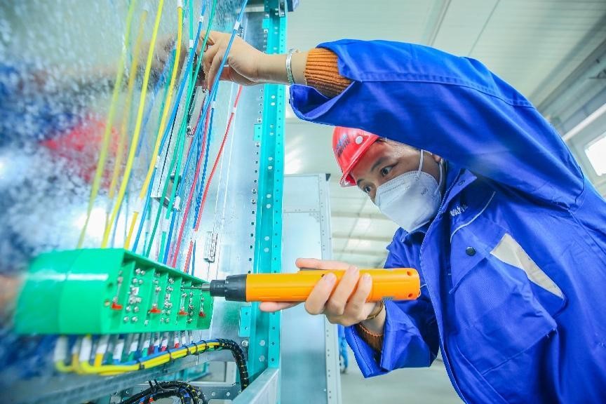 Un hombre trabaja en un taller de un parque industrial en el condado Hutubi, prefectura autónoma Hui de Changji, región autónoma Uygur de Xinjiang, en el noroeste de China, el 17 de octubre de 2022. (Pueblo en Línea/Tao Weiming)