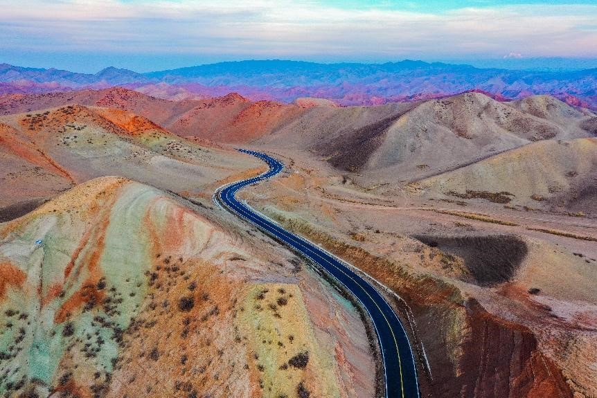 La foto del 3 de noviembre de 2022 muestra una carretera recién pavimentada que serpentea en el condado Hutubi, prefectura autónoma Hui de Changji, región autónoma Uygur de Xinjiang, en el noroeste de China. (Pueblo en Línea/Tao Weiming)