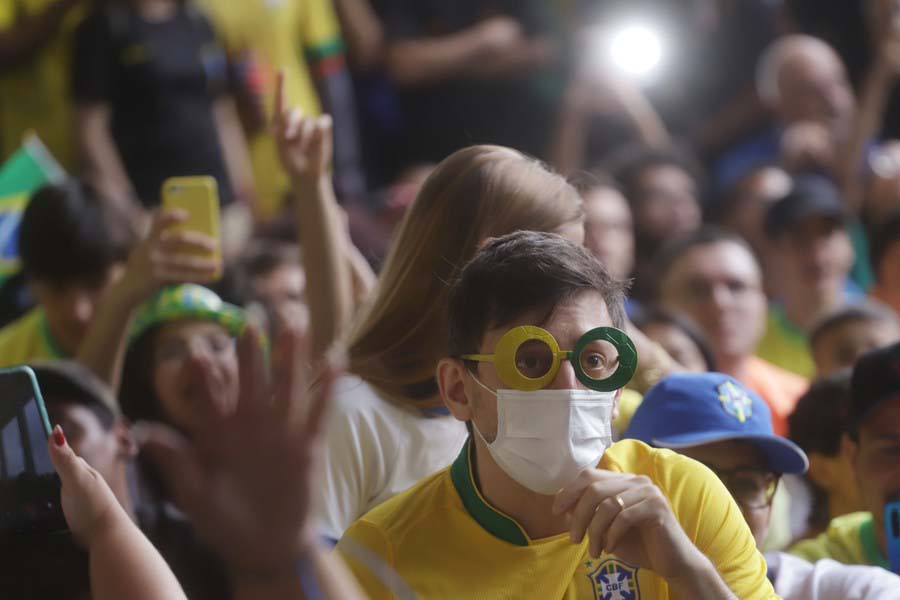 Aficionados observan la transmisión en vivo del partido correspondiente al Grupo G entre Brasil y Serbia en la Copa Mundial de la FIFA 2022, en Sao Paulo, Brasil, el 24 de noviembre de 2022. (Xinhua/Rahel Patrasso)