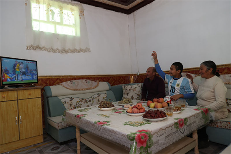 Abdulhalik Almdullah ve la Copa Mundial 2022 en Qatar con su familia. (Foto cortesía del Departamento de Propaganda del Comité de la Prefectura de Kashgar)