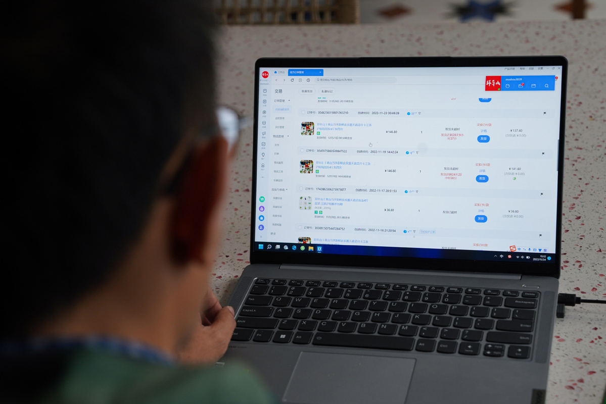 Zheng Tao maneja pedidos en línea en casa en la ciudad de Huangshan, provincia de Anhui, el 24 de noviembre de 2022. [Foto/Xinhua]