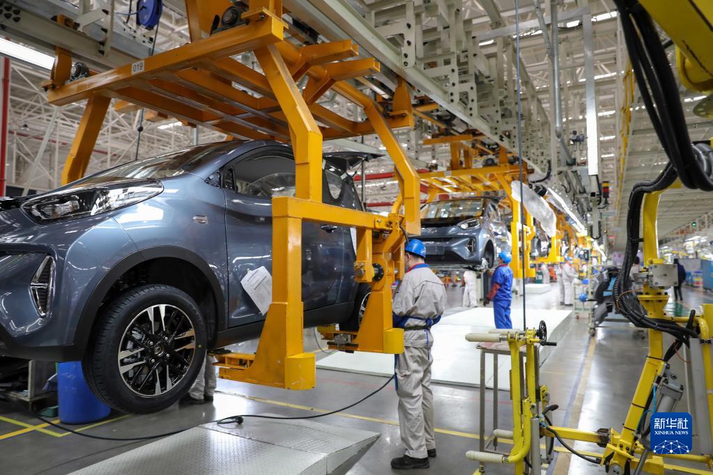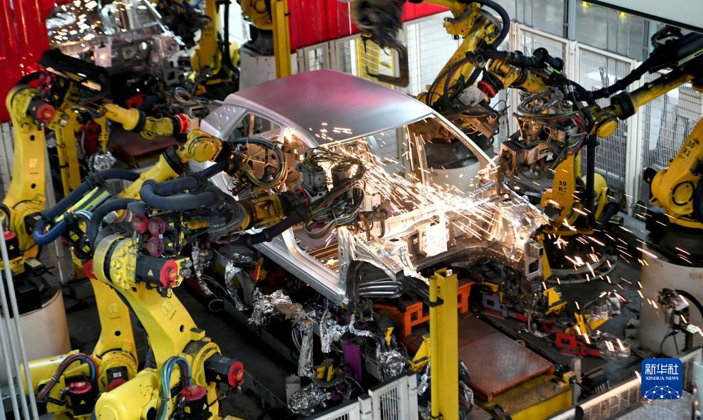 Los miembros del personal trabajan en un taller de fabricación de vehículos de nueva energía en la ciudad de Wuhu, provincia de Anhui, el 3 de febrero de 2023. [Foto/Xinhua]