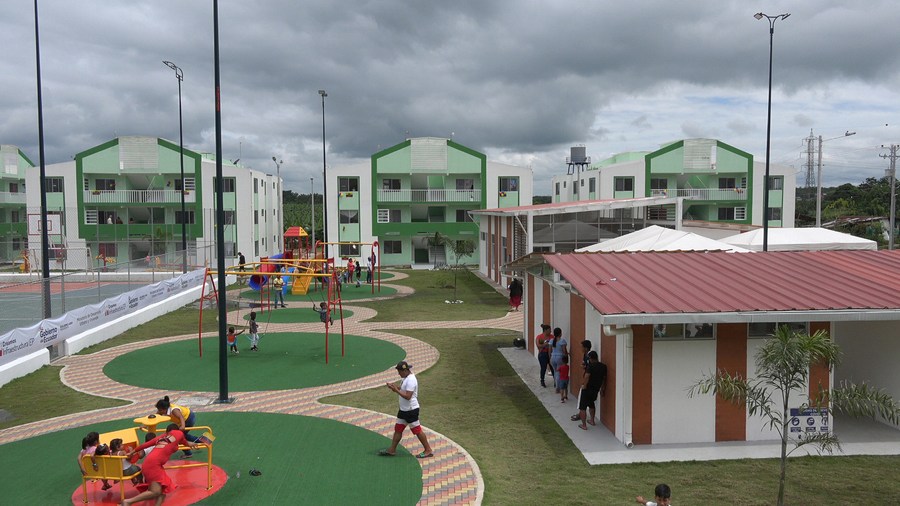 Imagen cedida por la Presidencia de Ecuador del 16 de febrero de 2023 de viviendas construidas por la empresa china Camc Engineering Co., Ltd en la Urbanización Patricia Pilar, en el cantón Buena Fe, en la provincia de Los Ríos, Ecuador. (Xinhua/Presidencia de Ecuador)