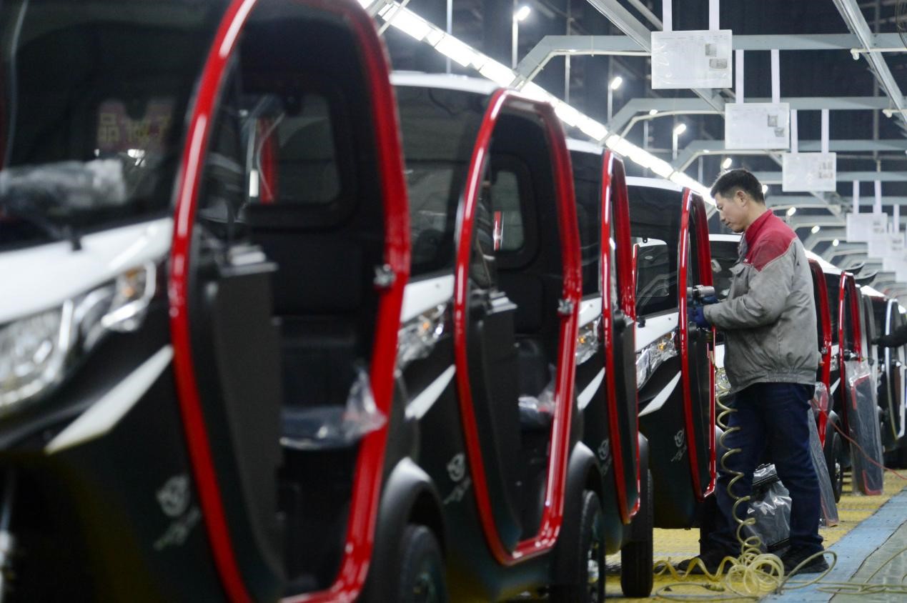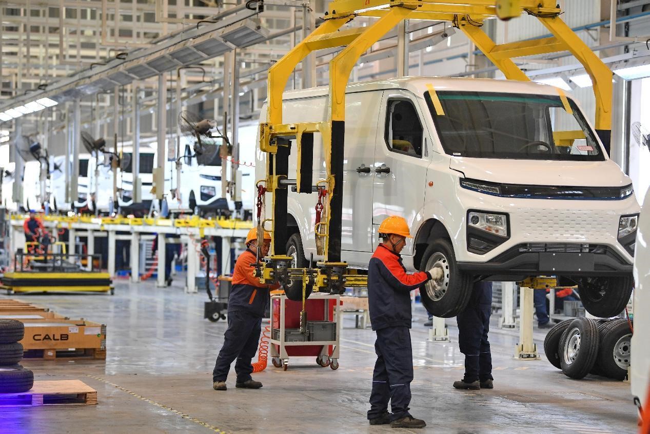 Los trabajadores ensamblan una minivan de nueva energía en una fábrica de automóviles en Nanchong, provincia de Sichuan, el 9 de febrero de 2023. (Foto: Li Xiangyu, Diario del Pueblo digital)