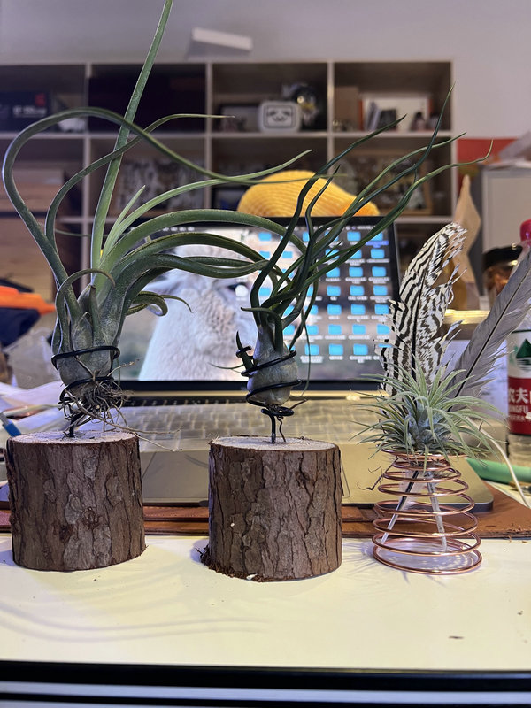 Los videos cortos de Chen Qiqi cubren una amplia gama de plantas, que incluyen coliflor romana, suculentas de conejito, lirio ara?a roja, totora, frijol y plantas de aire (en la foto). [Foto proporcionada a China Daily]