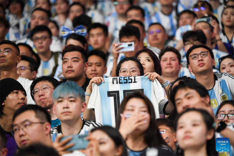 El diario deportivo "Olé" tituló "La Selección Argentina, súper local en China: un estadio celeste y blanco" para destacar que el estadio se pintó de albiceleste con "una marea de camisetas celestes y blancas" en las graderías para mostrar el apoyo a los campeones del mundo en el Mundial de Fútbol Qatar 2022.