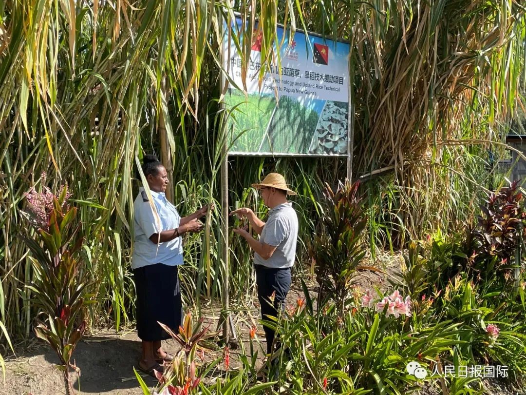 Un experto chino instruye a un agricultor en Papúa Nueva Guinea en el cultivo del Juncao. (Foto: Chen Xiaowei/ Diario del Pueblo)