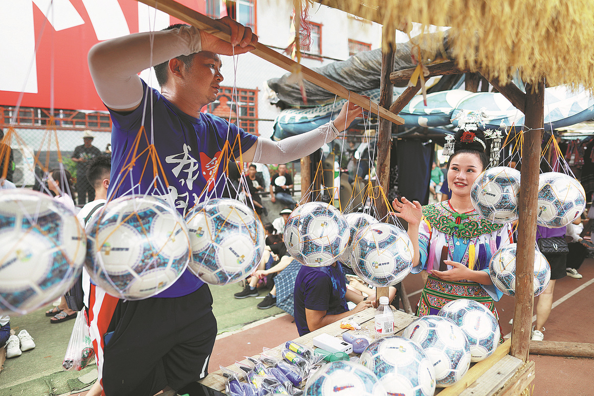 Un aldeano vende balones de fútbol fuera del estadio antes de la final de la "Super Liga de Aldeas", 29 de julio del 2023. (Foto: Zhu Xingxin/ China Daily)