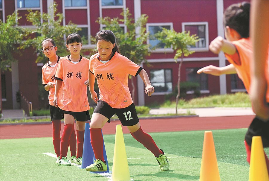 Los miembros del equipo de fútbol entrenan en la escuela. (Foto: Zhao Dongshan/ China Daily)