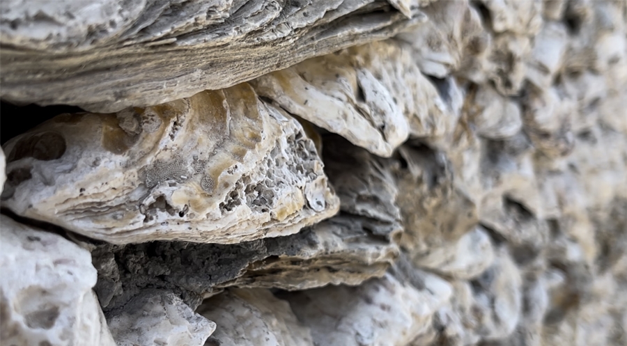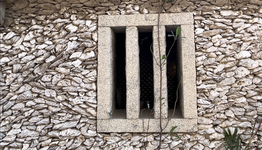 Debido a que las conchas de ostras son resistentes a la corrosión, los residentes locales las incrustaban en el exterior de la pared. Foto de Wang Jing, Diario del Pueblo digital
