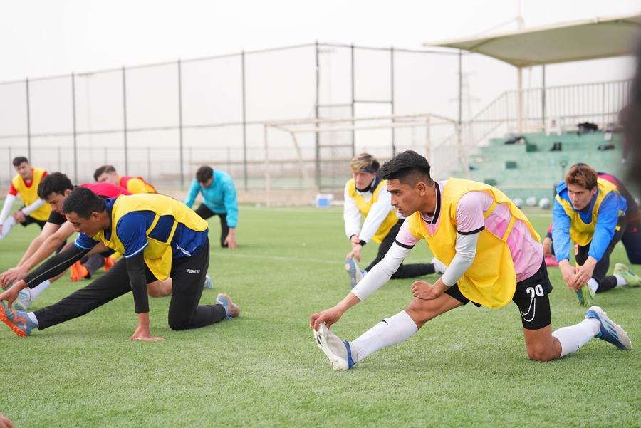 Jugadores de Xinjiang Silk Road Eagle realizan su entrenamiento. (Xinhua/Xie Dongfei)