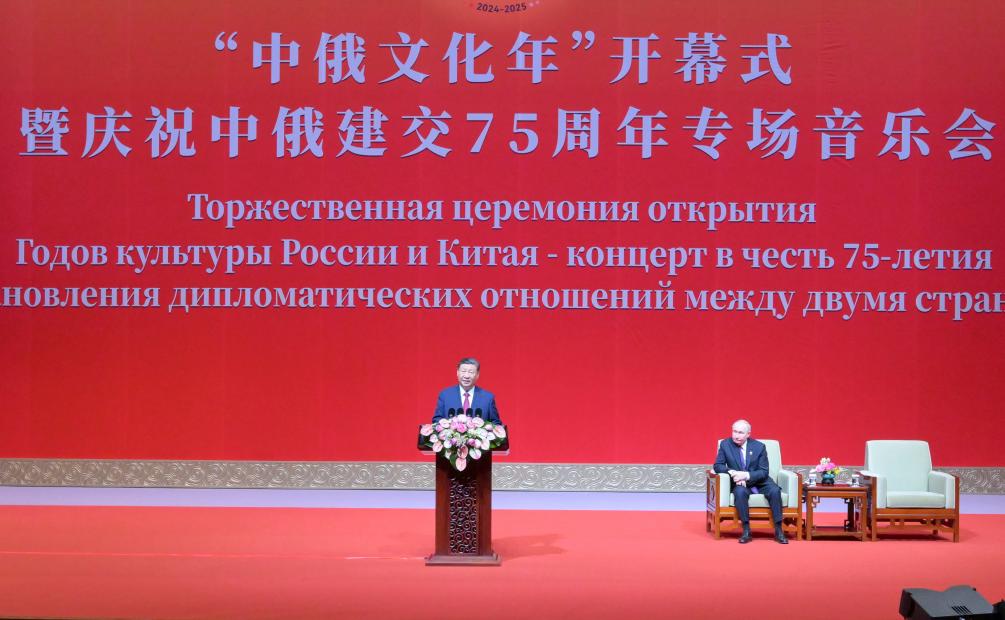 El presidente chino, Xi Jinping, y su homólogo ruso, Vladimir Putin, asistieron hoy jueves en Beijing a la ceremonia de inauguración de los A?os de Cultura China-Rusia y a un concierto especial para celebrar el 75o aniversario de las relaciones diplomáticas entre China y Rusia.