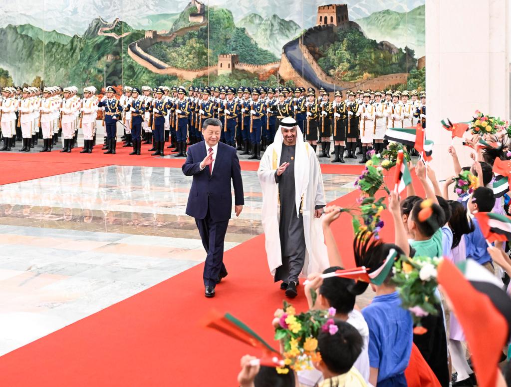 Xi dijo que China apoya a los Emiratos árabes Unidos en la búsqueda de un camino de desarrollo independiente y en la salvaguardia de su soberanía nacional, seguridad e intereses de desarrollo, y está dispuesta a consolidar la confianza política mutua y a fortalecer la cooperación con los Emiratos árabes Unidos en aras de construir conjuntamente una comunidad de futuro compartido de la humanidad.