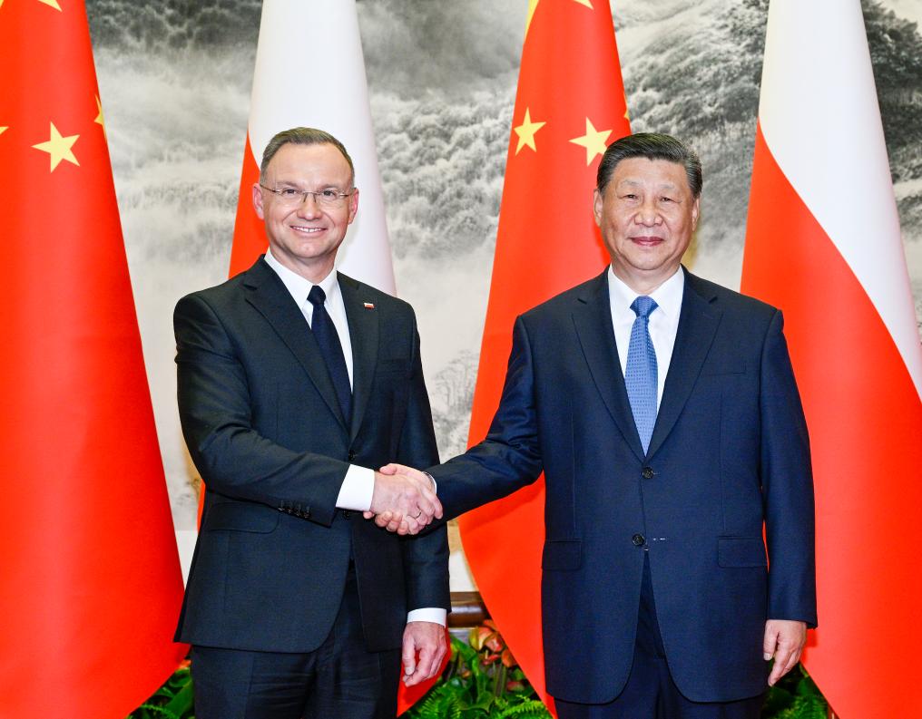 Xi instó a ambas partes a hacer un buen uso de mecanismos como el Comité de Cooperación Intergubernamental China-Polonia para fortalecer la coordinación estratégica y la planificación de la cooperación en diversas áreas, promover la cooperación de alta calidad en la Franja y la Ruta, impulsar la colaboración en importantes proyectos como el Ferrocarril Expreso China-Europa y fortalecer la cooperación en comercio, agricultura, economía digital, industria verde y energía limpia.