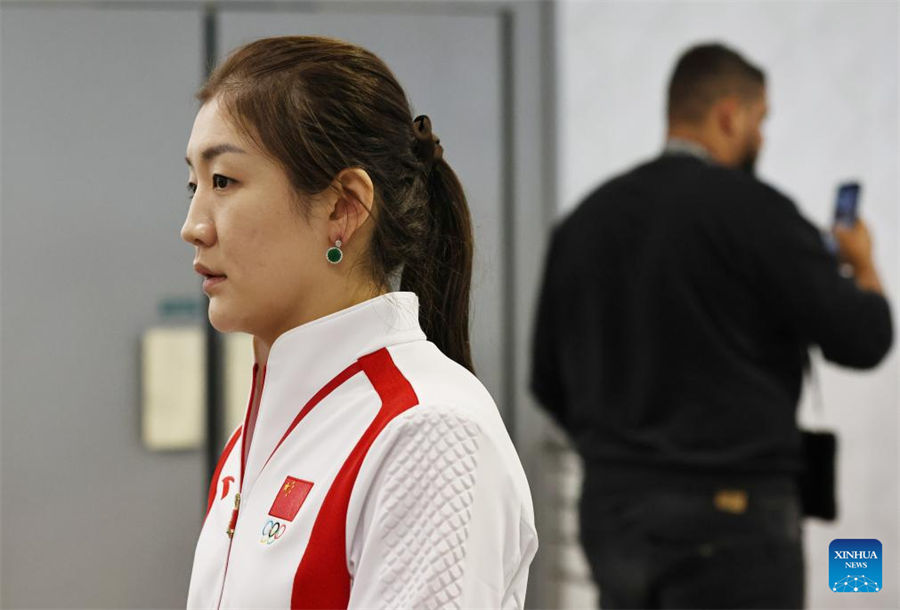 Wang Manyu, del equipo chino de tenis de mesa, llega al Aeropuerto Roissy-Charles de Gaulle para los próximos Juegos Olímpicos de París 2024, cerca de París, Francia, el 15 de julio de 2024. (Xinhua/Gao Jing)