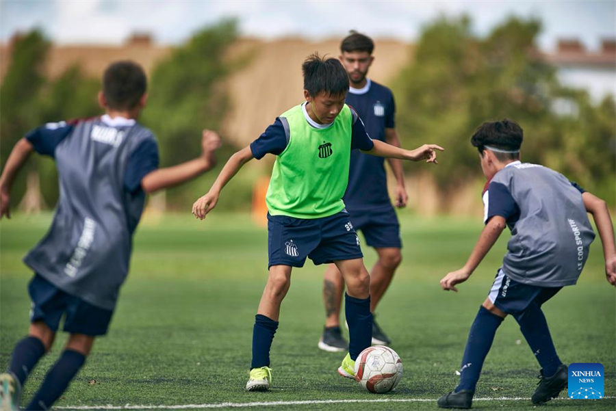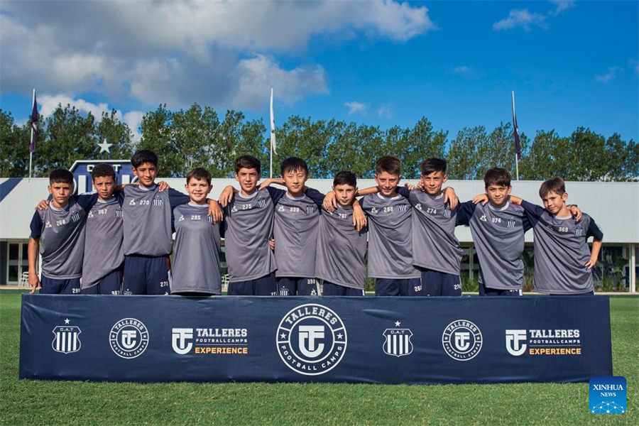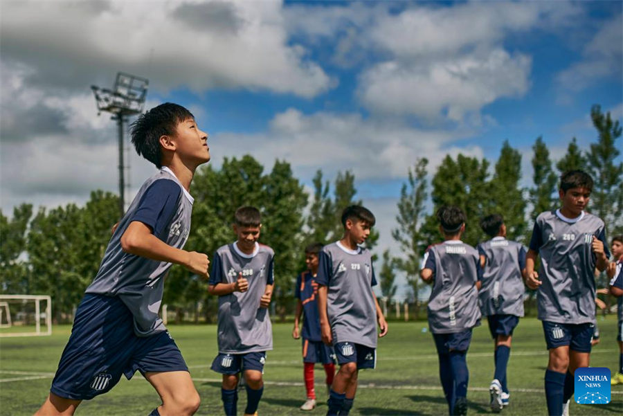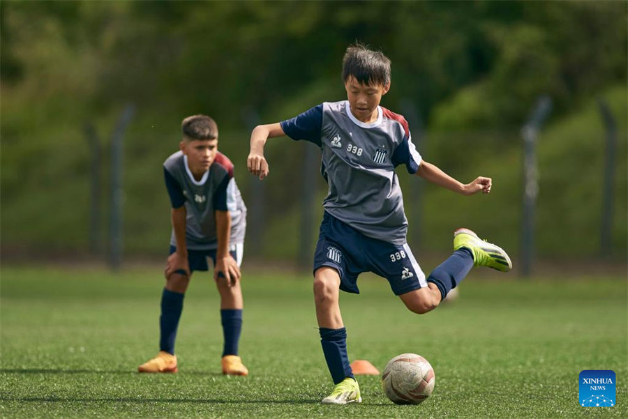 Imagen cedida por el Club Atlético Talleres del 27 de febrero de 2024 del futbolista Sun Zhuoyuan (i), "Oscar", participando en un entrenamiento en el Talleres Football Camps, en la ciudad de Córdoba, Argentina. El argentino Club Atlético Talleres posee un fuerte vínculo deportivo con China y "el orden" con el que trabajan en el país asiático, además de que cuenta con una escuela de fútbol en la ciudad de Xi'an, en la provincia de Shaanxi, en el noroeste de China, destacó el director comercial del club, Matías Marasca. (Xinhua/Club Atlético Talleres)