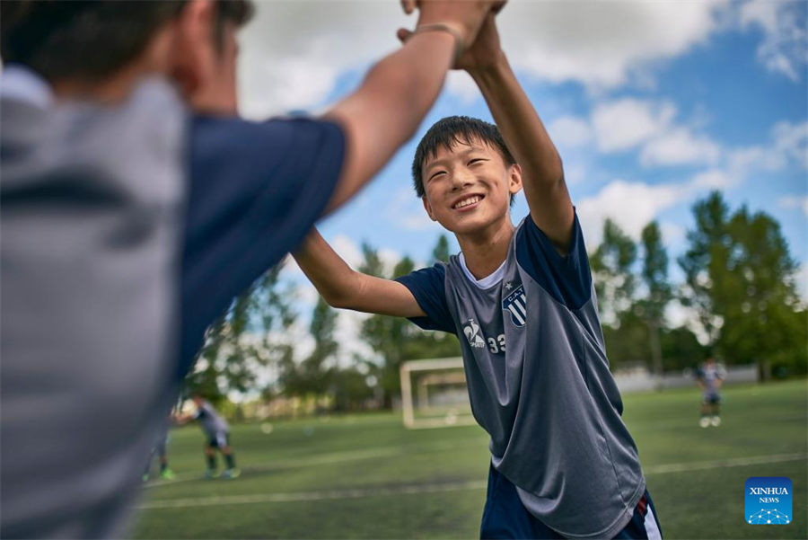Imagen cedida por el Club Atlético Talleres del 27 de febrero de 2024 del futbolista Sun Zhuoyuan (d), "Oscar", participando en un entrenamiento en el Talleres Football Camps, en la ciudad de Córdoba, Argentina. El argentino Club Atlético Talleres posee un fuerte vínculo deportivo con China y "el orden" con el que trabajan en el país asiático, además de que cuenta con una escuela de fútbol en la ciudad de Xi'an, en la provincia de Shaanxi, en el noroeste de China, destacó el director comercial del club, Matías Marasca. (Xinhua/Club Atlético Talleres)
