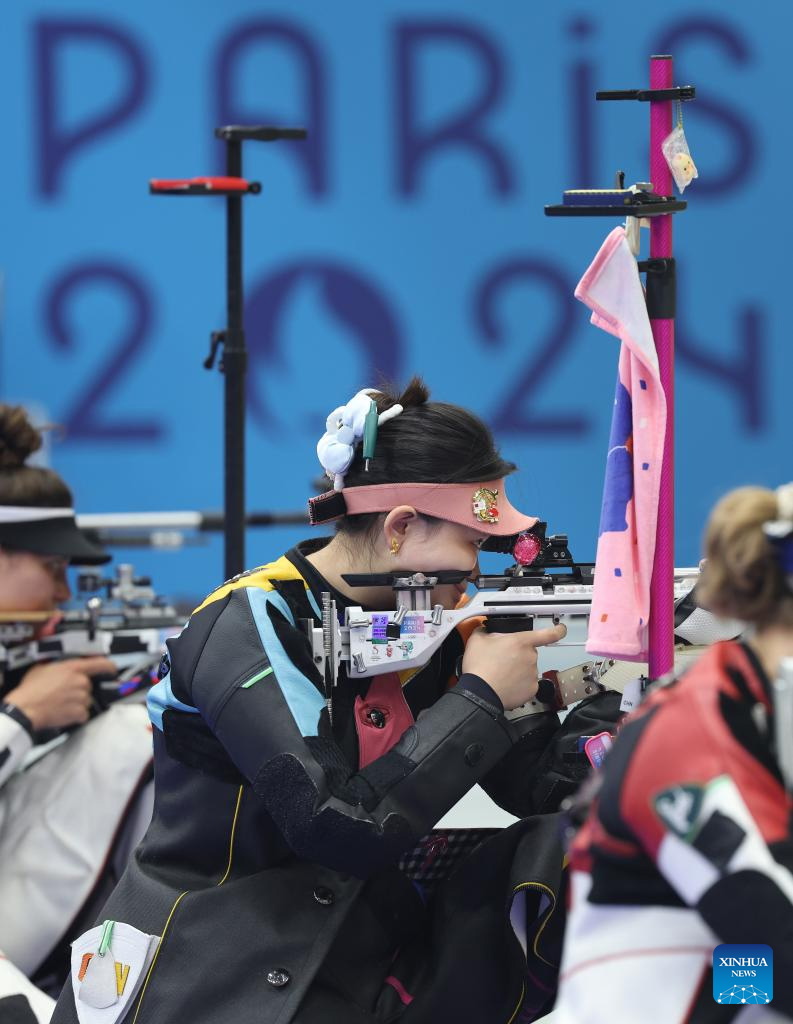 Zhang Qiongyue de China compite durante la final de 50 m rifle tres posiciones femenino de tiro en los Juegos Olímpicos de París 2024, en Chateauroux, Francia, el 2 de agosto de 2024. (Xinhua/Zhao Dingzhe)