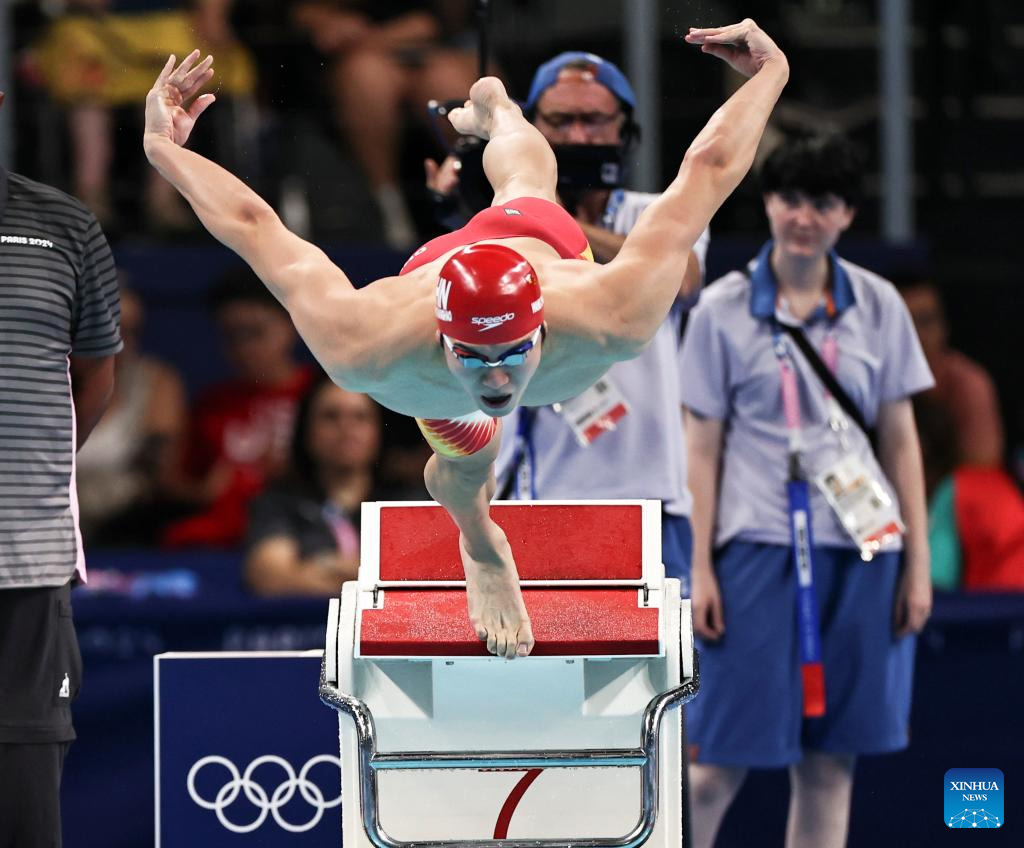 París 2024: Wang Changhao compite durante las series de 100m mariposa masculino de natación