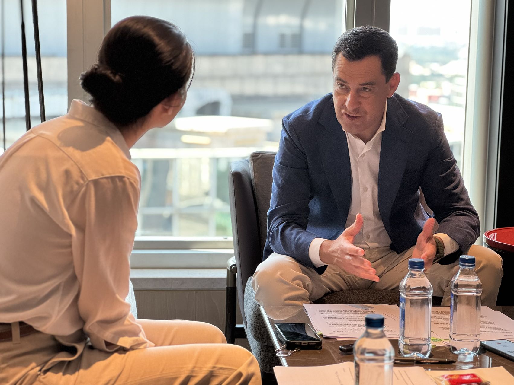 Juan Manuel Moreno Bonilla, presidente de la comunidad autónoma espa?ola de Andalucía, recibe una entrevista exclusiva de Diario del Pueblo digital. (Foto proporcionada por Javier Salas Ramos)